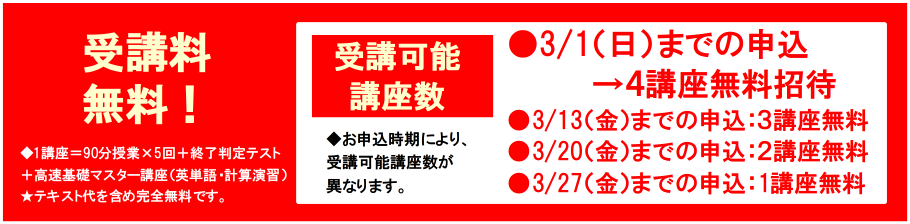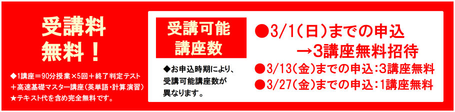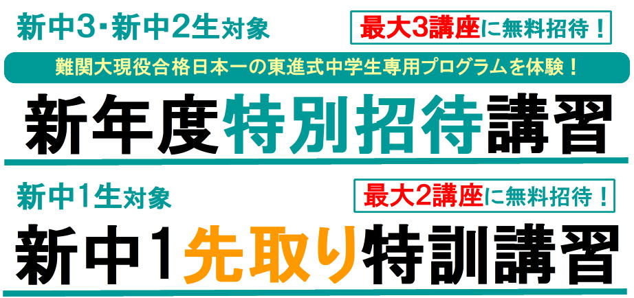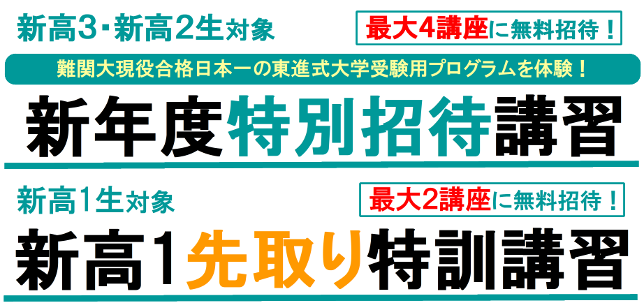 ◆東進・東進中学NET新年度特別招待講習&先取り特訓講習(最大4講座無料招待)