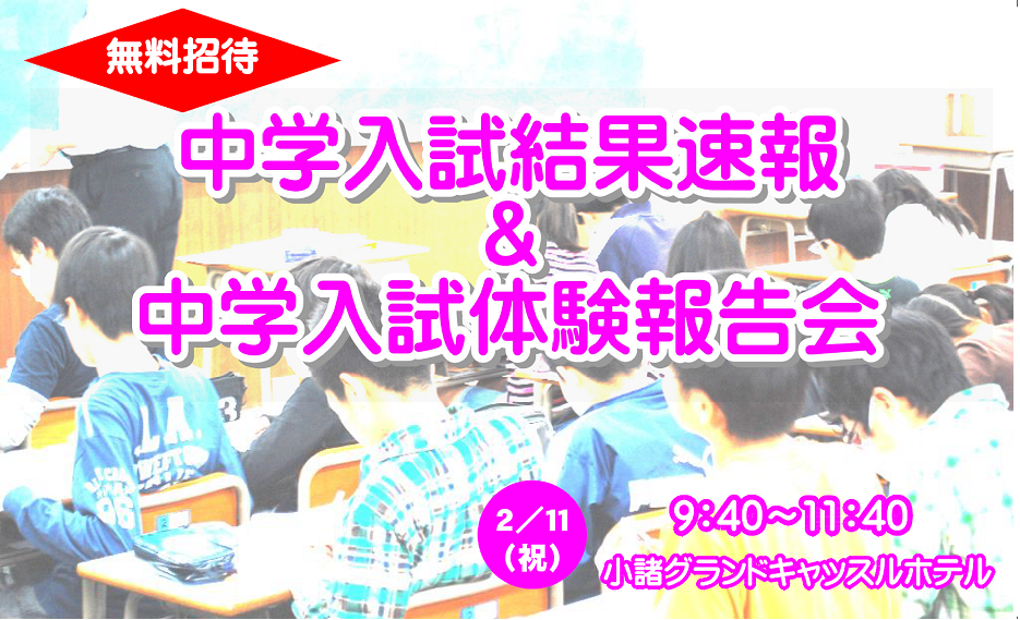 ◆県立高校後期選抜直前対策講座:目前に迫った高校入試の直前対策(数学・理科)に無料招待します。