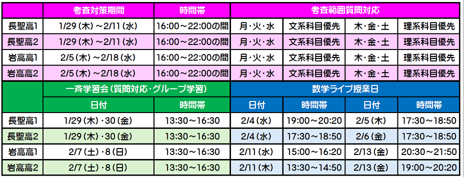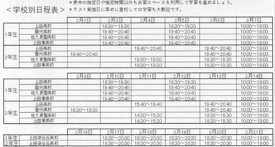 東進衛星予備校 野沢北高前校 後期期末対策日程