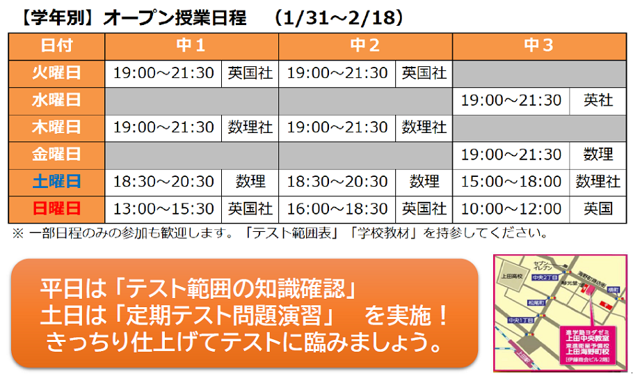 ◆東進衛星予備校 上田海野町校 後期期末対策案内